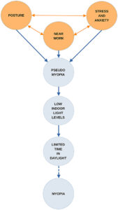 Hypothesis: The combined effects of suggested factors leading to myopia