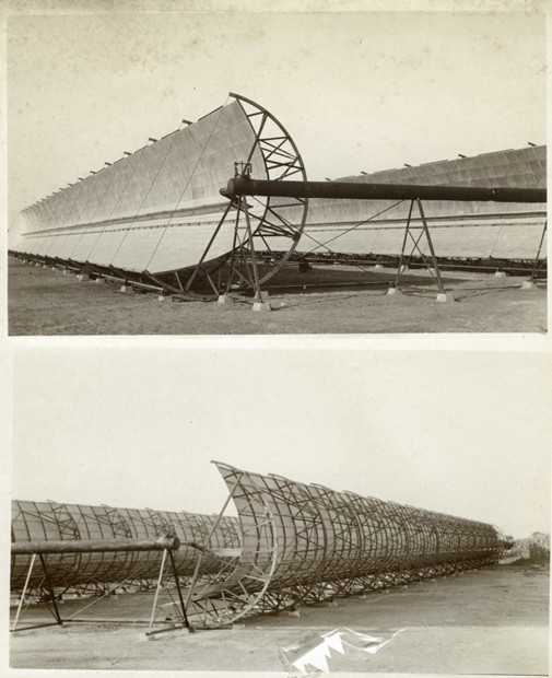 The station enabled Shuman and his British financiers to demonstrate that solar energy was cheaper than the alternative commonly used at the time, coal from England. The station consisted of five rows of parabolic mirrors, each 62 metres long and four metres wide. The troughs automatically aligned themselves with the position of the sun. The associated steam engine, which was specially developed for this application, had an output of 55 hp and could pump 2,000 litres of water per minute from the Nile to irrigate cotton fields.